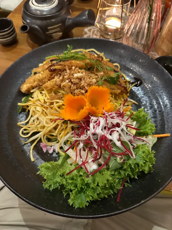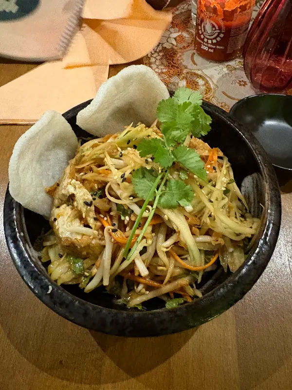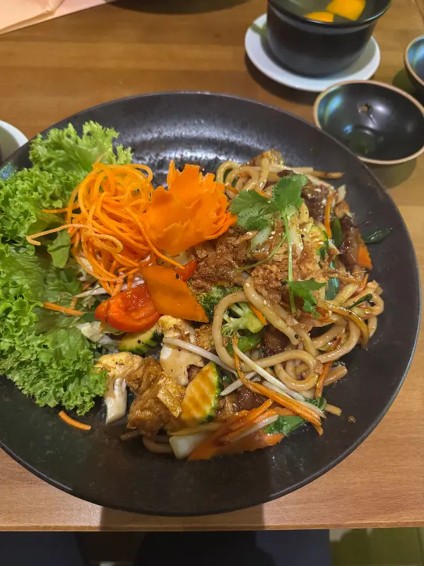 신선한 채소와 두부, 버섯 등으로 만든 샐러드. 건강하면서도 맛있는 비건 메뉴입니다.