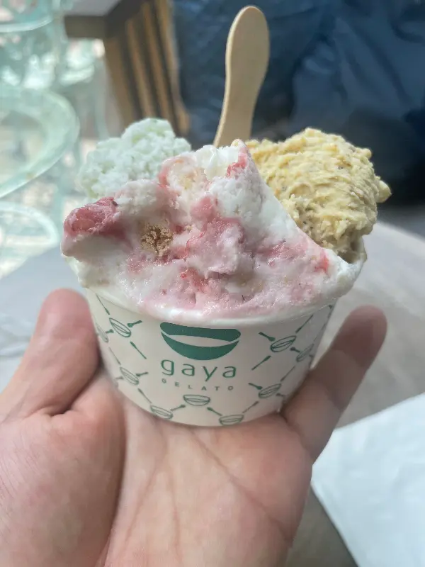 서비스에 대한 아쉬움은 남지만, 젤라또 자체의 맛은 훌륭했다. 다양한 종류의 젤라또를 맛보는 재미, 신선한 재료에서 느껴지는 풍부한 풍미는 Gaya Gelato를 다시 찾게 만드는 충분한 이유가 된다. 다음번 방문에는 더욱 개선된 서비스를 기대하며, 새로운 맛의 젤라또를 맛볼 생각에 벌써부터 설렌다.