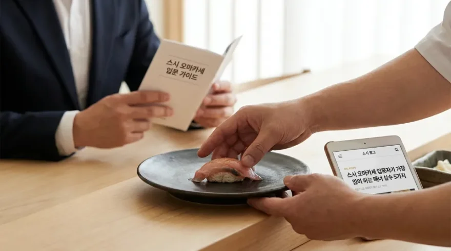 큰 마음먹고 예약한 1인당 10만 원 이상의 스시 오마카세, 혹시 셰프의 눈치를 보느라 맛을 제대로 즐기지 못하고 오신 적은 없으신가요? 최근 2026년 미식 트렌드를 살펴보면, ‘엔트리급’을 넘어 ‘미들급 스시야’에 대한 수요가 폭발적으로 늘어나며 대중화가 이루어졌지만, 여전히 카운터석(다찌) 특유의 엄숙한 분위기 때문에 긴장하는 분들이 많습니다.