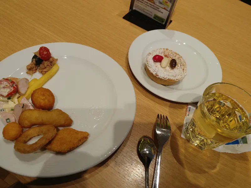 접시에 담긴 음식들은 하나같이 먹음직스러웠다. 샐러드 코너에서 싱싱한 채소와 드레싱을 듬뿍 담고, 따뜻한 음식 코너에서는 튀김과 소시지를 골랐다. 형형색색의 음식들이 접시 위에서 조화롭게 어우러졌다. 뷔페의 장점은 역시 다양한 음식을 조금씩 맛볼 수 있다는 점이다.