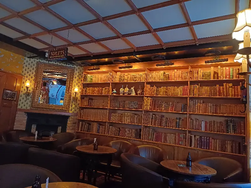 벽 한쪽을 가득 채운 책장은 단순한 장식이 아닌, 이 펍의 역사를 대변하는 듯했다. 오래된 책들의 낡은 표지와 빛바랜 색감은 세월의 흔적을 고스란히 담고 있었다. 책장 앞 편안한 가죽 의자에 앉아 맥주를 마시며 책을 읽는다면, 시간을 잊은 채 깊은 사색에 잠길 수 있을 것 같았다.