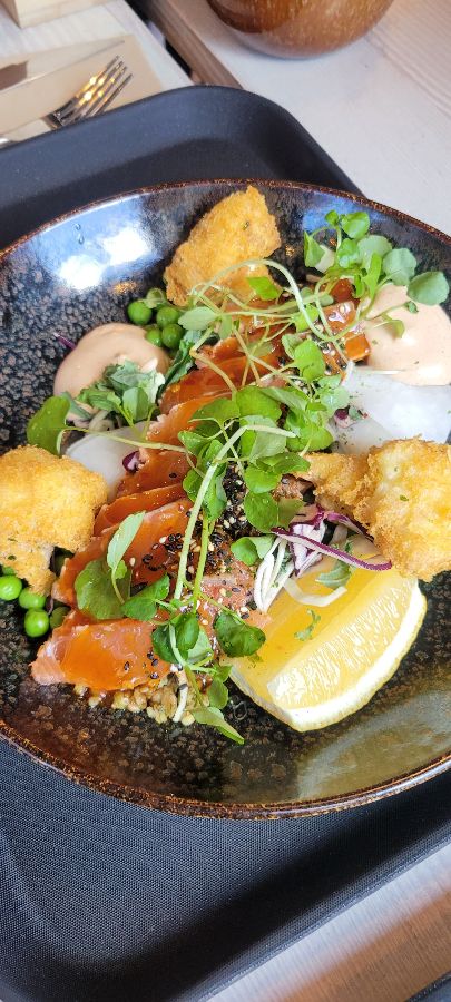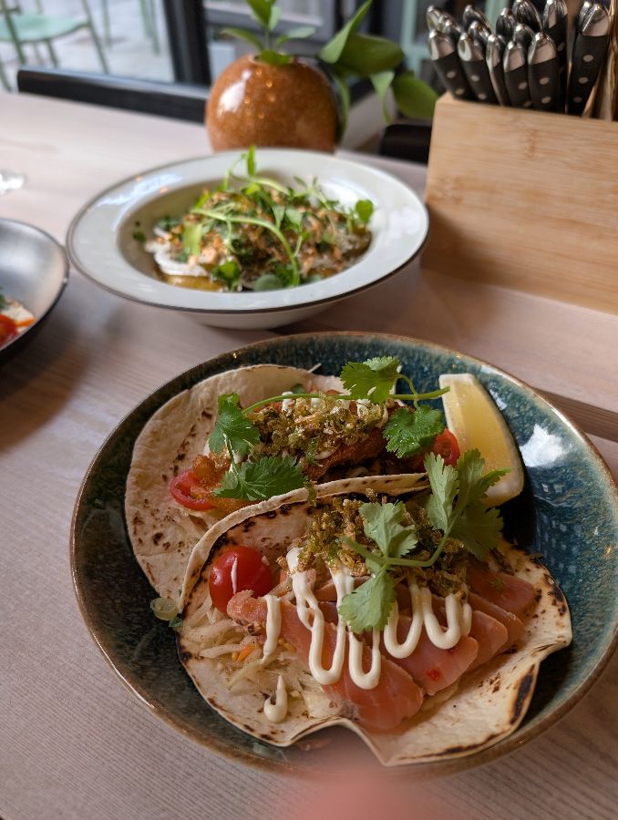 모든 음식은 단순히 맛있을 뿐만 아니라, 정성스럽게 담겨 나와 하나의 예술 작품 같았습니다. 다채로운 색감의 재료들이 조화롭게 어우러져 보는 즐거움까지 더해주었습니다. 신선한 생선살, 아삭한 채소, 향긋한 허브가 어우러진 플레이팅은 식사 내내 눈을 즐겁게 했습니다. 특히 매콤한 연어와 크리스피 피시의 비주얼은 사진을 찍지 않고는 배길 수 없을 만큼 매력적이었습니다.
