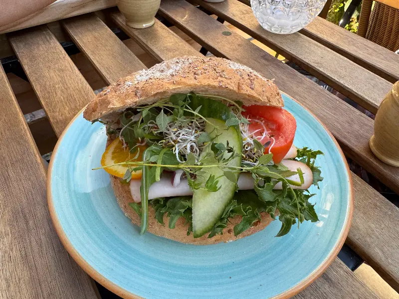 다음으로 시나몬 롤을 맛봤다. 겉은 바삭하고 속은 촉촉한 식감이 정말 좋았다. 은은한 시나몬 향이 입안 가득 퍼져 나갔고, 달콤한 슈가파우더와 조화롭게 어우러졌다. 양도 푸짐해서 혼자 먹기에는 조금 많았지만, 너무 맛있어서 남김없이 다 먹었다. 이 카페에 온다면 시나몬 롤은 꼭 먹어봐야 할 메뉴다. 샌드위치 또한 푸짐한 양과 신선한 재료 덕분에 만족스러웠다는 후기가 많다. 빵 속에 가득 찬 채소와 햄, 치즈의 조합은 든든한 한 끼 식사로도 손색이 없다.