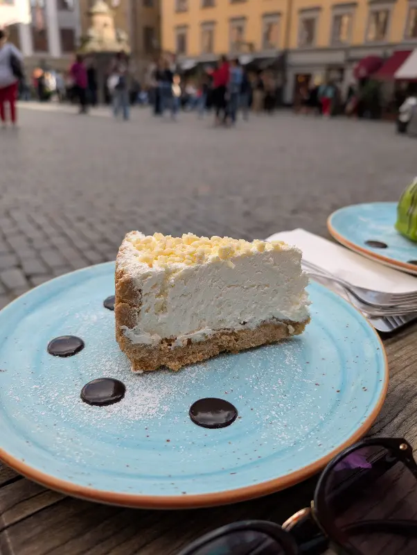 나는 아쉽게도 날씨가 추워서 테라스에 앉지는 못했지만, 창가 자리에 앉아 광장을 바라보며 식사를 즐겼다. 창밖으로 보이는 풍경은 정말 아름다웠다. 붉은색, 노란색 건물들이 옹기종기 모여 있는 모습은 마치 동화 속 마을 같았다.