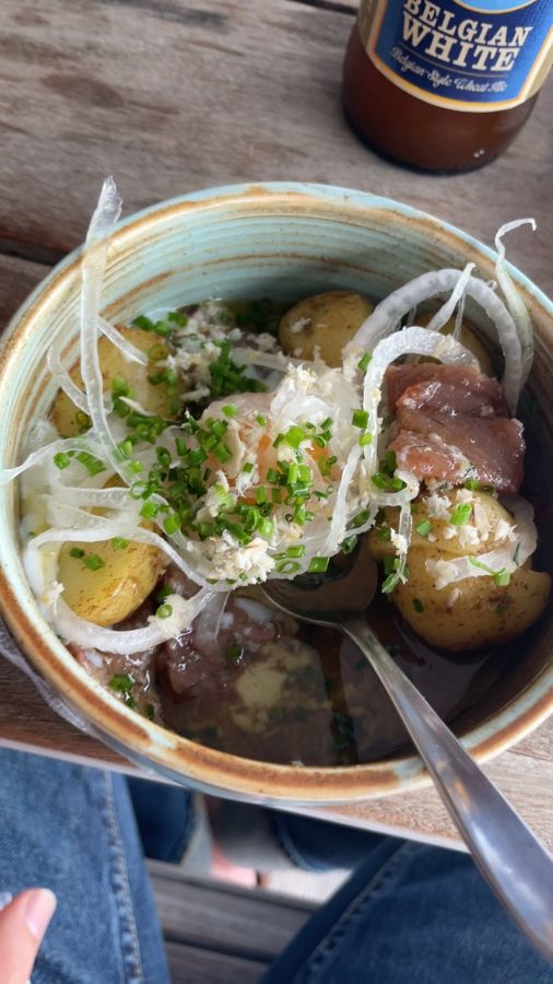 옹바츠브리간은 스웨덴 전통 요리에도 뛰어난 감각을 선보입니다. 으깬 감자, 절인 오이, 그리고 링곤베리를 곁들인 미트볼은 스웨덴 현지의 맛을 가장 높은 수준으로 구현해 냅니다. 고기의 진한 육즙과 부드러운 감자의 조화, 그리고 새콤달콤한 링곤베리가 어우러져 입안 가득 다채로운 맛의 향연을 펼칩니다. 이 외에도 신선한 감자와 절인 청어, 달걀, 양파, 딜이 어우러진 전통 요리는 짭조름하면서도 깊은 풍미를 자랑하며, 스웨덴의 맛을 제대로 느낄 수 있게 해줍니다. 풍성한 재료와 정갈한 플레이팅은 눈으로 한 번, 입으로 두 번 즐거운 경험을 선사합니다.