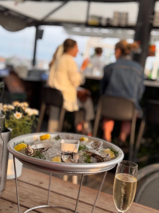 옹바츠브리간에 발을 들이는 순간, 방문객들은 일상에서 벗어나 특별한 세상으로 들어서는 듯한 느낌을 받습니다. 특히 날씨가 좋은 날, 물가 바로 앞 데크에 앉는다면 그 경험은 잊을 수 없는 추억이 될 것입니다. 물가에서 불어오는 시원한 바람, 잔잔하게 일렁이는 물결, 그리고 저 멀리 보이는 스톡홀름의 아름다운 전경은 그 자체로 완벽한 배경이 되어줍니다. 낭만적인 분위기는 물론, 세심하게 준비된 테이블 세팅과 편안함을 더하는 쿠션들은 방문객들에게 최상의 휴식을 제공합니다. 이처럼 옹바츠브리간은 미각뿐만 아니라 시각과 청각까지 만족시키는 오감 만족의 공간입니다. 미리 예약하여 물가 쪽 좌석을 요청한다면, 더욱 특별한 시간을 보낼 수 있습니다.