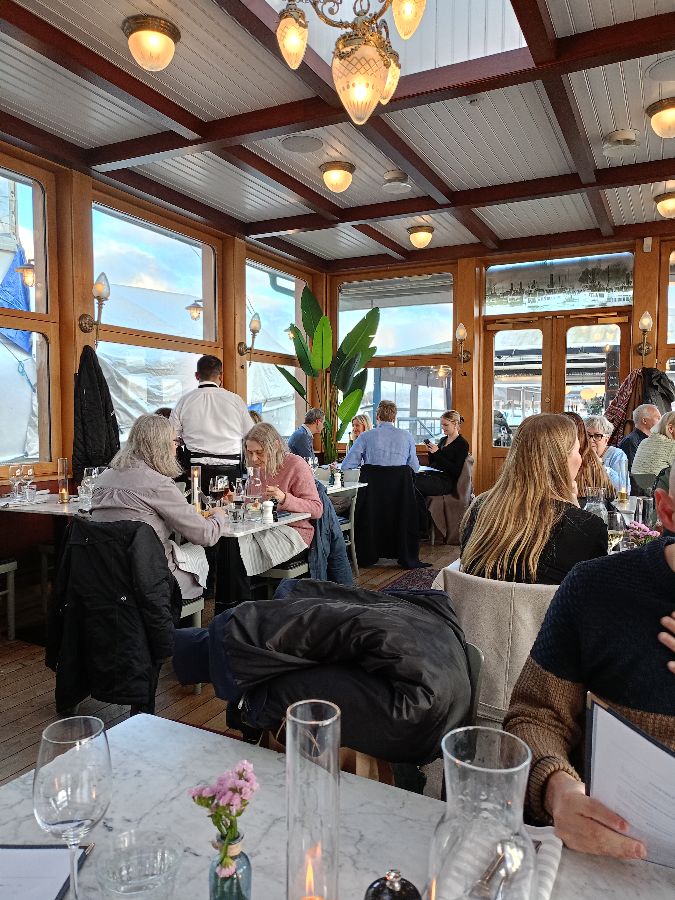 옹바츠브리간은 아름다운 경치뿐만 아니라, 세련되면서도 편안한 실내 인테리어로 방문객들의 마음을 사로잡습니다. 넓은 통창을 통해 들어오는 햇살과 물가의 풍경은 아늑하면서도 탁 트인 개방감을 선사합니다. 은은한 조명과 우드톤 인테리어는 따뜻하고 고급스러운 분위기를 연출하며, 곳곳에 놓인 푸른 식물들이 생기를 더해줍니다. 고객들은 이곳에서 편안하게 담소를 나누며 식사를 즐길 수 있습니다. 또한, 친절하고 효율적인 서비스는 옹바츠브리간의 또 다른 강점입니다. 직원들은 방문객 한 명 한 명에게 세심한 주의를 기울이며, 마치 오랜 친구를 대하듯 따뜻하게 응대합니다. 예약 없이 방문한 손님에게도 친절하게 자리를 마련해주는 배려심은 방문객들에게 깊은 인상을 남깁니다. 덕분에 이곳은 “두 번째 방문인데, 스톡홀름에 다시 오면 꼭 다시 올 거예요”라는 말이 절로 나오는 곳입니다.