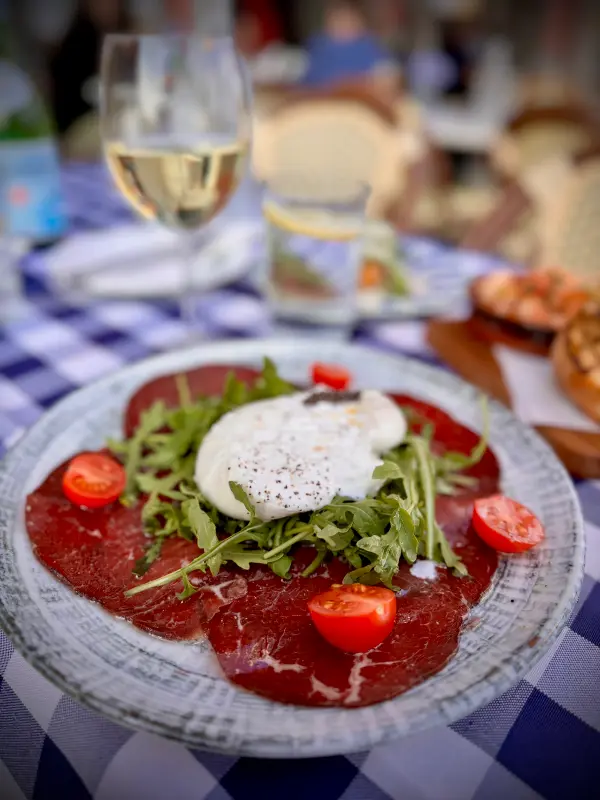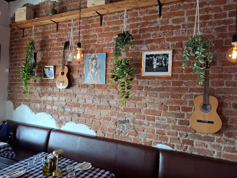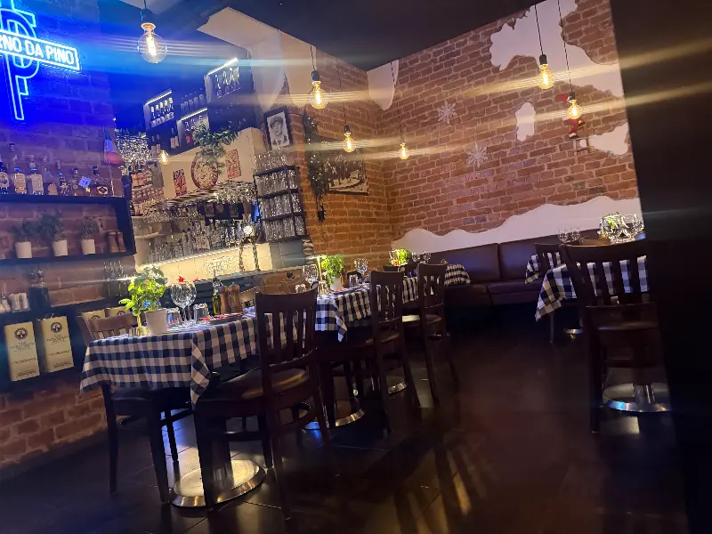 식당 내부는 아늑하고 편안한 분위기로 가득했습니다. 벽돌 벽에는 이탈리아를 연상시키는 그림과 소품들이 장식되어 있었고, 은은한 조명 아래 테이블마다 놓인 체크무늬 식탁보가 따뜻함을 더했습니다. J. F.님의 리뷰처럼, 캐주얼한 저녁 식사는 물론 특별한 저녁 모임에도 완벽한 장소라는 생각이 들었습니다. 인테리어 하나하나에 얼마나 세심하게 신경 썼는지 느낄 수 있었습니다.
