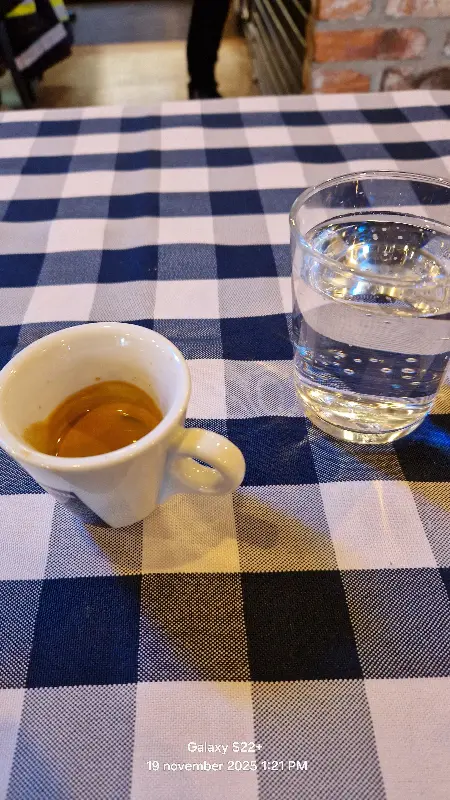 식사를 마치고 따뜻한 에스프레소를 주문했습니다. 진한 커피 향이 입안 가득 퍼지면서, 행복한 기분으로 식사를 마무리할 수 있었습니다. 이사크 님의 리뷰처럼, 에스프레소까지 포함되어 더욱 만족스러웠습니다.