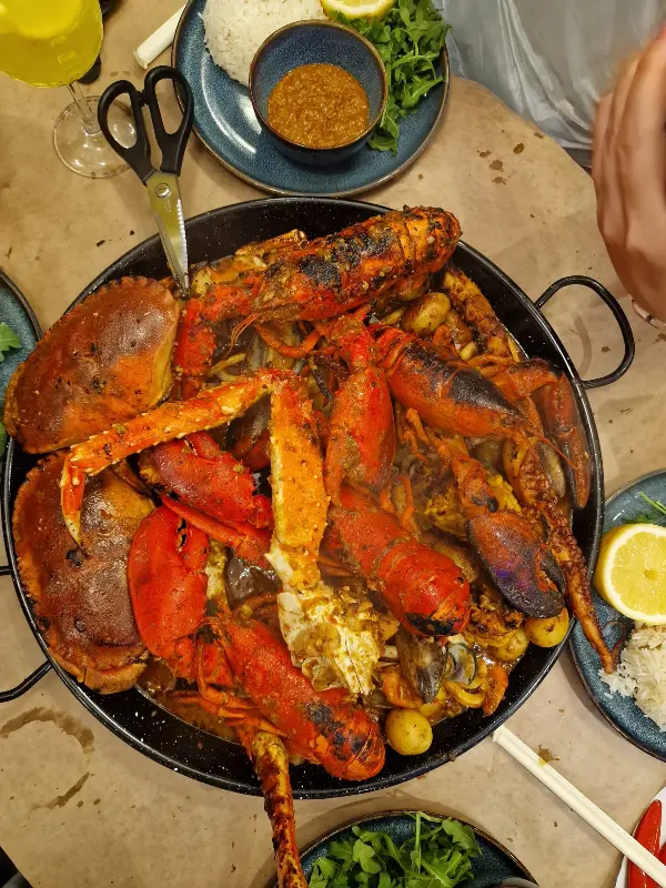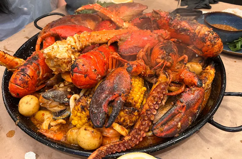 랍스터, 게, 킹크랩, 오징어, 홍합, 새우 등 다양한 해산물을 한 번에 맛볼 수 있습니다.
