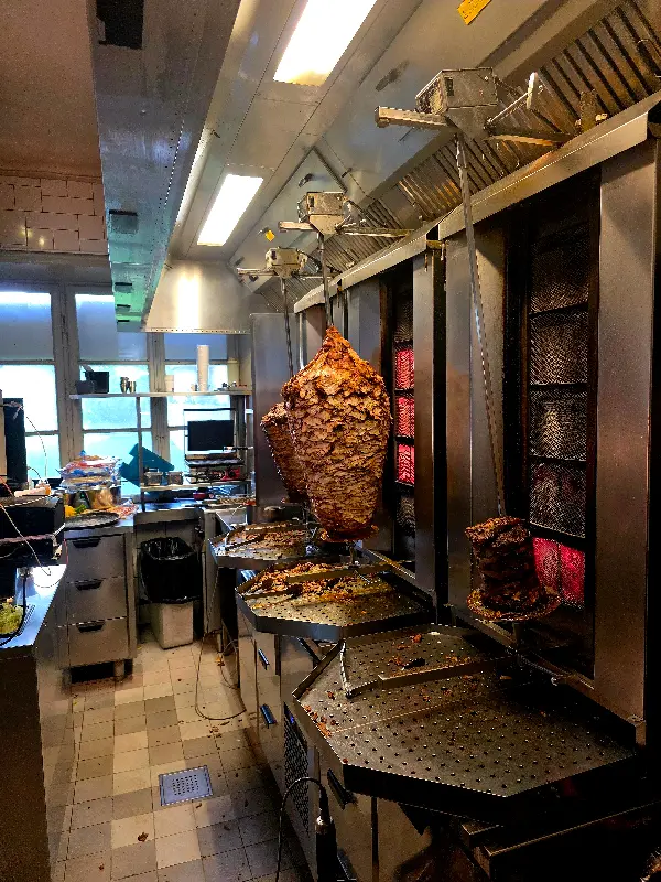 케밥을 만들기 위해 쉴 새 없이 돌아가는 고기의 모습이 인상적입니다.