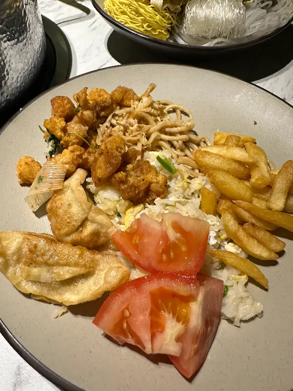 뷔페식으로 마련된 신선한 재료들은 눈을 즐겁게 합니다. 윤기가 흐르는 소고기와 양고기, 싱싱한 채소, 쫄깃한 면 종류, 다양한 해산물까지 없는 게 없습니다. 특히 야채와 수제 면이 맛있다는 평이 많습니다. 접시에 원하는 재료를 가득 담아 테이블로 돌아오는 발걸음은 언제나 설렙니다.