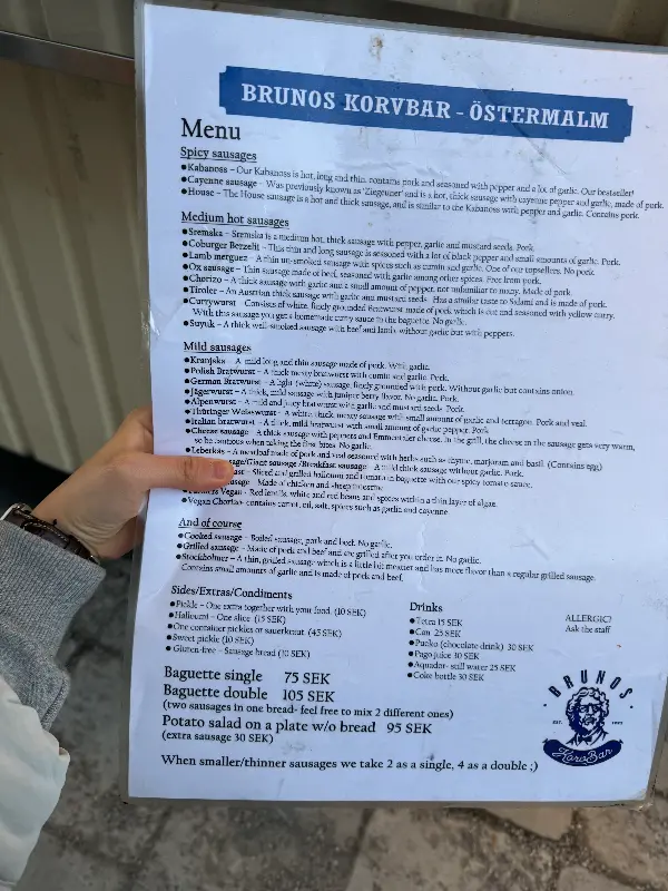 브루노스 코르브바르에서 핫도그를 먹은 것은 스톡홀름 여행 중 최고의 선택 중 하나였다. 저렴한 가격에 맛있는 핫도그를 배불리 먹을 수 있다는 점이 좋았다. 가게 직원들도 친절했고, 덕분에 기분 좋게 식사를 즐길 수 있었다. 다만, 점심시간에는 사람이 많아 대기 시간이 길어질 수 있다는 점은 감안해야 한다.