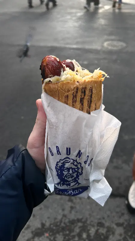 여행 꿀팁: 브루노스 코르브바르는 앉아서 먹을 자리가 많지 않으니, 포장해서 근처 공원에서 먹는 것을 추천한다. 특히 날씨가 좋은 날에는 공원에서 여유롭게 핫도그를 즐기는 것이 최고의 선택이 될 것이다. 핫도그를 받자마자 바로 먹어야 가장 맛있으니, 이동하면서 먹는 것도 좋은 방법이다.