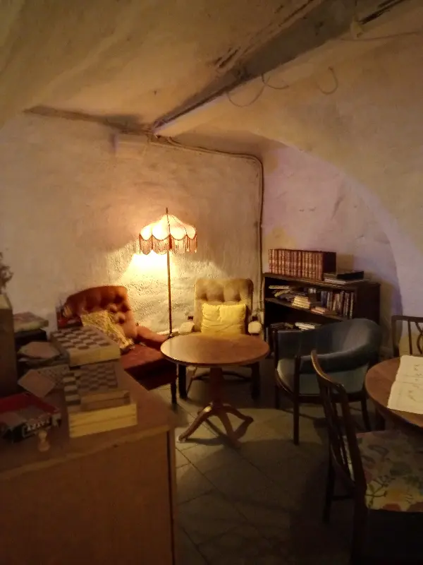 지하로 내려가는 계단을 따라 한 걸음씩 내딛을 때마다, 기대감이 점점 커져갔습니다. 앤티크 가구들이 놓여 있는 모습은 마치 오래된 영화 세트장에 들어온 듯한 느낌을 주었습니다. 벽돌이 그대로 드러난 벽면과 아치형 천장은 독특한 분위기를 더하고, 곳곳에 놓인 아기자기한 소품들은 마치 누군가의 비밀 아지트에 놀러 온 듯한 친근함을 느끼게 합니다. 특히, 욕실에 설치된 디스코 조명은 예상치 못한 유쾌함을 선사하며, 이 공간의 개성을 더욱 돋보이게 합니다.