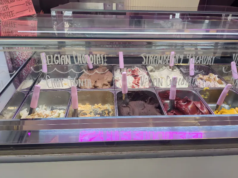 StikkiNikki의 문을 열고 들어서는 순간, 눈 앞에 펼쳐진 것은 형형색색의 젤라또 향연이었다. 진열장 안에는 벨기에 초콜릿, 스트로베리 라임 소르베, 피넛 버터, 망고 등 다채로운 맛들이 저마다의 매력을 뽐내고 있었다. 특히 눈길을 사로잡은 것은 매일 다른 맛을 선보인다는 점이었다. 오늘 내가 맛볼 수 있는 특별한 젤라또는 어떤 맛일까? 기대감에 부푼 마음으로 젤라또를 고르기 시작했다.