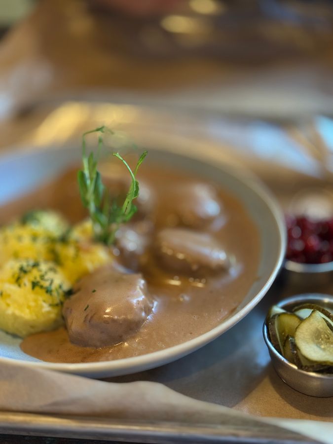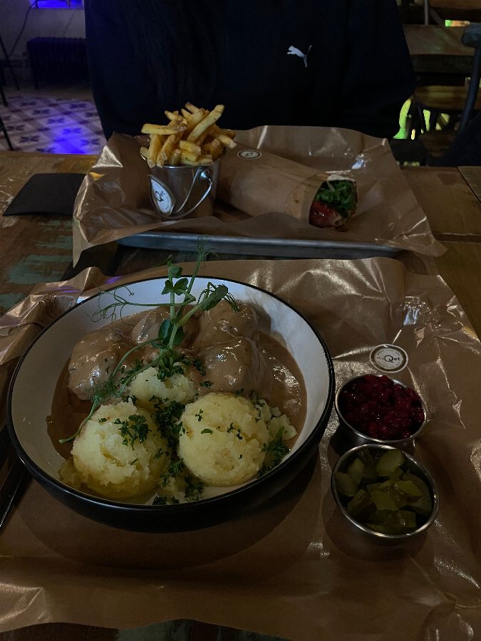 미트볼은 순록, 무스, 소고기, 돼지고기 등 다양한 종류의 고기로 만들어져 선택의 폭이 넓으며, 특제 소스와 링곤베리 잼이 어우러져 정통 스웨덴 요리의 깊은 맛을 선사합니다. 어떤 종류를 선택하든 실망하지 않을 만큼, 각각의 미트볼은 완벽한 양념과 부드러운 식감을 자랑합니다. 따뜻하고 풍미 가득한 이 요리는 스웨덴의 정서를 고스란히 담아낸 듯, 먹는 내내 행복감을 안겨줍니다.