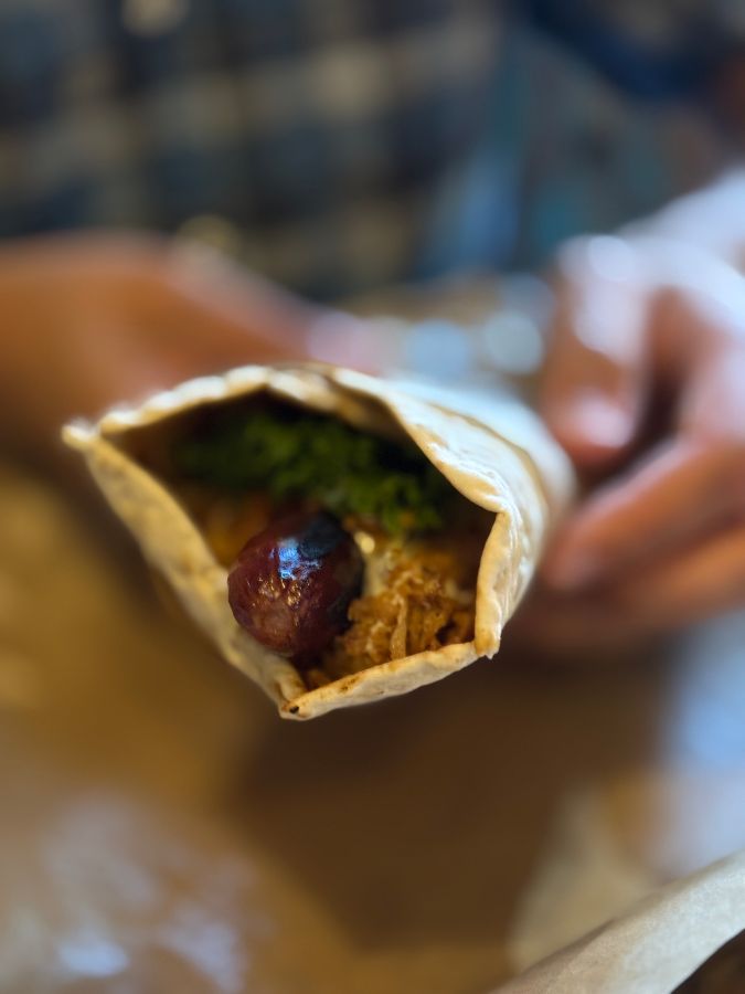 미트볼만큼이나 매력적인 메뉴는 바로 ‘헌터’ 소시지 롤입니다. 겉보기에는 중간 크기처럼 보이지만, 얇은 플랫브레드 안에는 상상 이상의 풍성한 재료들이 가득 들어 있습니다. 겉은 노릇하게 구워지고 속은 촉촉한 헌터 소시지는 그 자체로 훌륭한 맛을 자랑합니다. 짭조름하면서도 고소한 소시지는 플랫브레드와 완벽하게 어우러지며, 씹을 때마다 육즙이 터져 나와 미각을 즐겁게 합니다.
