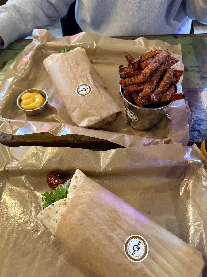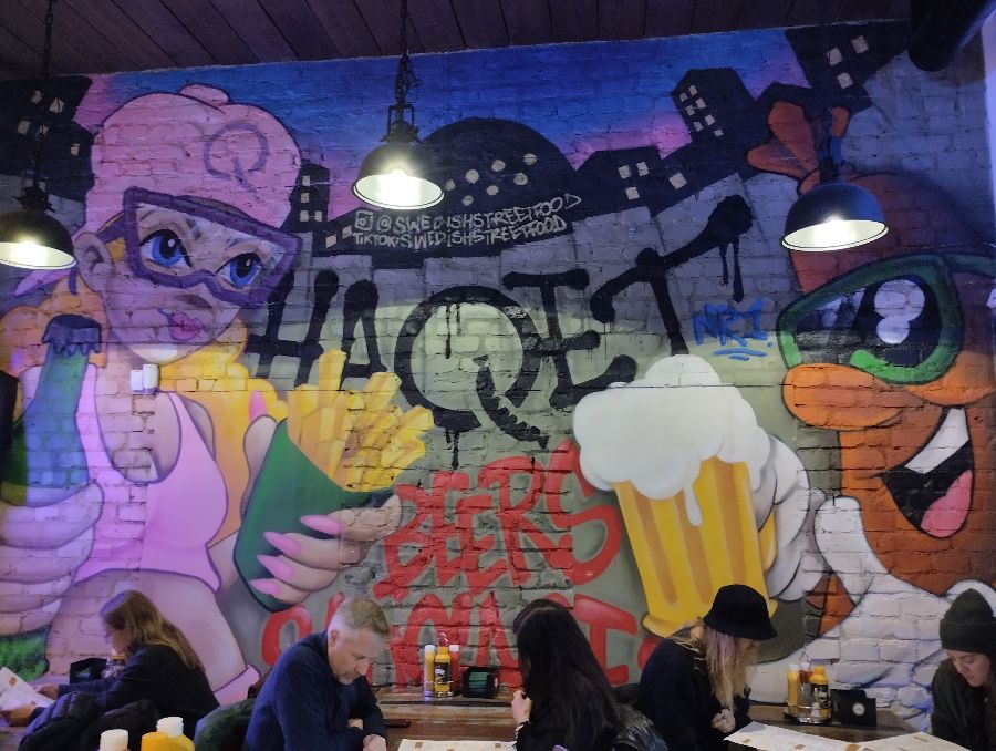 하케츠의 문을 열고 들어서는 순간, 은은한 조명 아래 펼쳐지는 아늑하고 세련된 인테리어가 눈길을 사로잡습니다. 벽면을 가득 채운 화려하면서도 감각적인 그래피티와 천장에 매달린 빈티지한 전구들이 어우러져 독특하고 편안한 분위기를 자아냅니다. 테이블은 나무의 질감이 살아있는 견고한 디자인으로, 이곳이 단순한 패스트푸드점이 아닌, 여유롭게 식사를 즐길 수 있는 비스트로임을 짐작하게 합니다. 친절한 직원의 따뜻한 미소와 함께 안내받은 자리에 앉으면, 여행의 피로가 사르르 녹아내리는 듯한 안락함이 느껴집니다. 북유럽 특유의 고요함 속에서 조용히 대화를 나누며 식사를 기다리는 동안, 음식에 대한 기대감은 점점 커져만 갑니다.