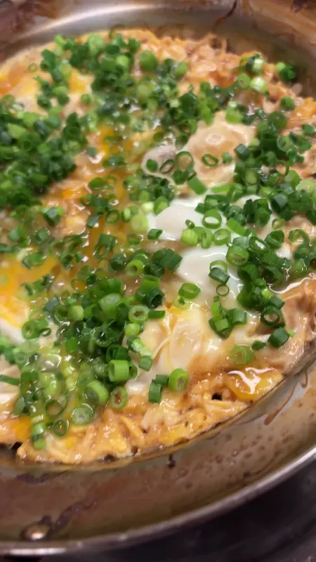 코스의 마지막은 돈부리 스타일의 식사로 마무리된다. 냄비에 남은 육수에 밥과 계란, 그리고 다진 파를 넣어 끓여낸 돈부리는, 짭짤하면서도 고소한 맛이 일품이다. 특히, 아귀 육수가 밥알 하나하나에 스며들어, 깊은 풍미를 느낄 수 있다.