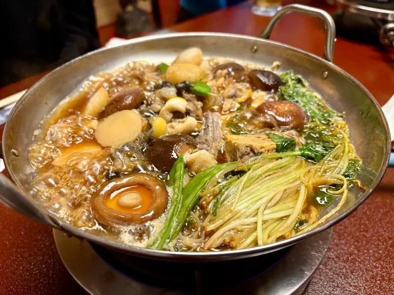 푸짐한 재료들이 듬뿍 들어간 이세 겐의 대표 메뉴, 안코나베.