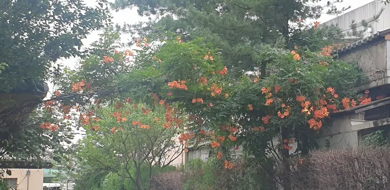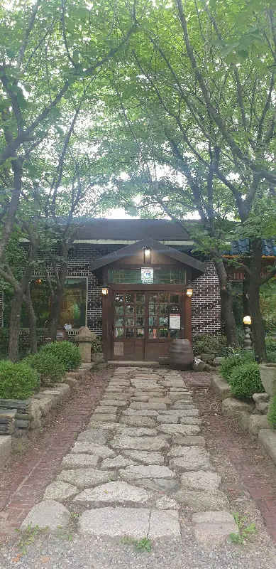 홍시한정식으로 향하는 길은 마치 비밀의 정원으로 들어서는 듯한 느낌이었다. 푸르른 나무들이 햇살을 가려주는 돌담길을 따라 걷다 보니, 낡은 듯하면서도 정갈한 기와지붕이 눈에 들어왔다. 70년대 병풍과 옛날 가정집 분위기를 그대로 간직한 내부는, 마치 외할머니 댁에 방문한 듯 포근하고 정겨운 느낌을 자아냈다. 요즘 감성으로는 다소 낡아 보일 수 있지만, 오히려 그 세월의 흔적이 더욱 깊은 매력으로 다가왔다.