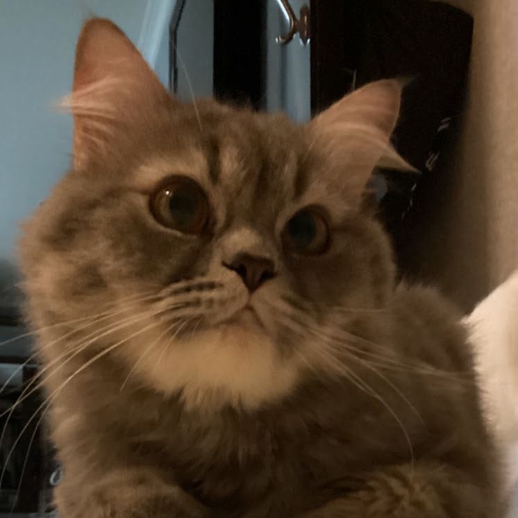 카페의 한 공간에 전시된 고양이 그림 또는 조각품으로 추정되는 오브제. 아늑하고 예술적인 분위기를 더합니다.