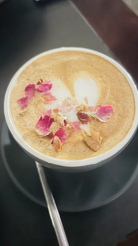 플래터는 다소 평범했지만, 다른 메뉴들은 가격 대비 훌륭한 퀄리티를 자랑했다. 칵테일은 화려한 비주얼만큼이나 맛도 훌륭했다. 특히, 동굴의 신비로운 분위기를 닮은 푸른 빛깔의 칵테일은 눈길을 사로잡았다. 식사를 마치고 따뜻한 로즈 라떼를 마시며 여유로운 시간을 보냈다. 은은한 장미 향이 입안 가득 퍼지면서 기분까지 좋아졌다.