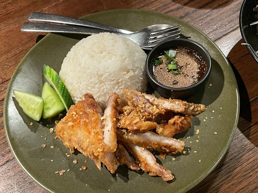 그린 커리는 부드러운 코코넛 밀크 베이스에 닭고기와 각종 채소가 푸짐하게 들어가 있었습니다. 은은한 매콤함과 부드러운 크림 맛이 조화롭게 어우러져 밥과 함께 먹기 좋았습니다. 샛노란 빛깔의 그린 커리는 그 자체로도 훌륭한 요리였지만, 고슬고슬한 흰밥과 함께 먹으니 더욱 깊은 맛을 느낄 수 있었습니다. 팟타이와 볶음밥, 그리고 커리까지, 모든 메뉴가 예상보다 푸짐한 양으로 제공되어 넉넉하게 즐길 수 있었습니다.
