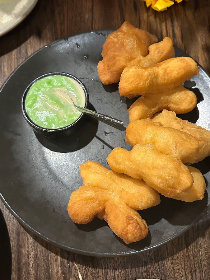 메인 요리 외에도 ‘Par thung go’라는 튀김 메뉴를 맛보았습니다. 밥을 다 먹어갈 때쯤 주문하면 10분 정도 걸려 나오는데, 바삭바삭한 식감이 매우 좋았습니다. 갓 튀겨낸 따끈한 튀김은 바삭하면서도 고소하여, 식사의 마지막을 완벽하게 장식해주었습니다. 특히 함께 제공되는 달콤한 소스에 찍어 먹으니 더욱 맛있었습니다.