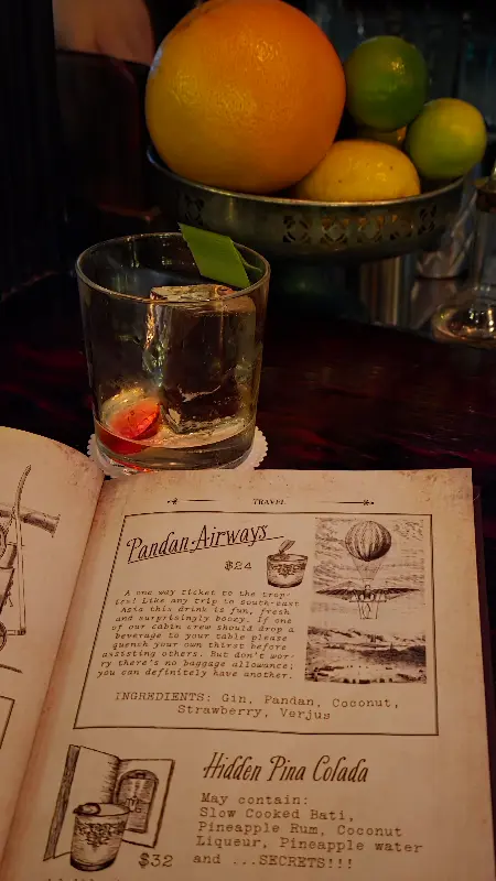 또 다른 날, “숨겨진 피나 콜라다”를 주문했을 때의 특별한 경험도 잊을 수 없다. 직원은 책 한 권을 가져다주면서 “가볍게 읽을거리 좀 드릴게요”라고 말했다. 책을 펼치니 그 안에 피나 콜라다가 담긴 힙 플라스크가 숨겨져 있었다. 예상치 못한 위트에 웃음이 터져 나왔다.