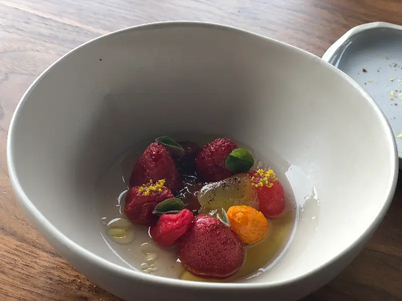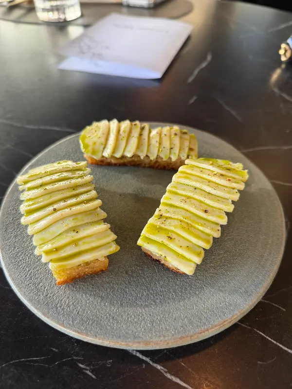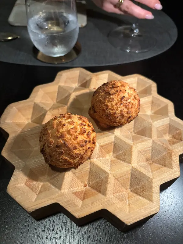 하나하나가 그림처럼 예쁘고 맛은 더할 나위 없이 훌륭하다. 작은 공 모양의 스낵은 바삭하면서도 촉촉한 식감을 자랑하며, 입안에서 부드럽게 녹아내리는 풍미는 감탄을 자아낸다. 스낵 게임은 식사의 시작을 더욱 즐겁게 만들어주는 특별한 경험이었다.