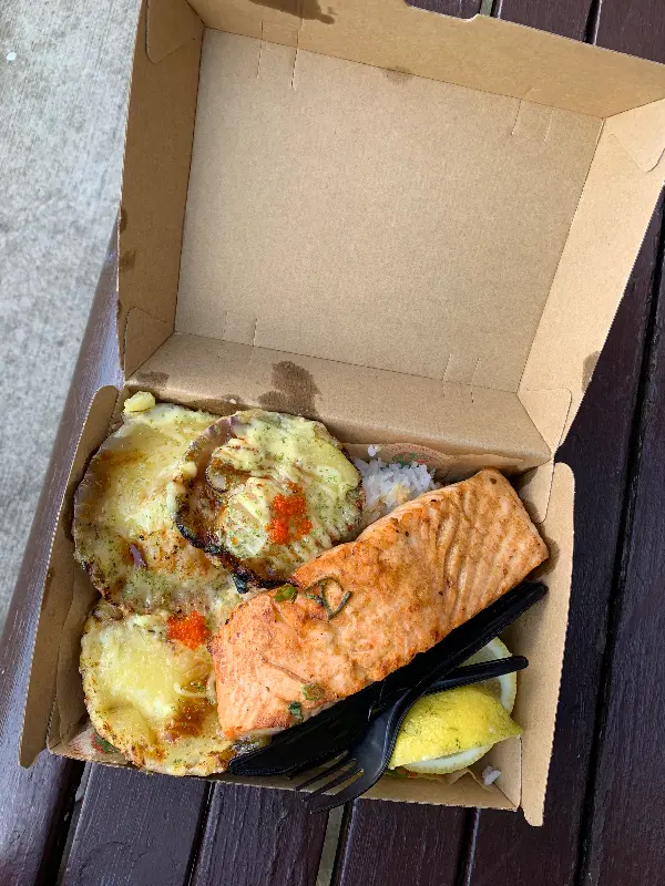고민 끝에 연어구이와 치즈 가리비구이를 선택했다. 촉촉하게 구워진 연어는 입안에서 살살 녹았고, 짭짤하면서도 고소한 치즈 가리비는 밥과 함께 먹으니 환상적인 조합이었다. 특히 가리비 안에는 밥이 함께 들어있어 든든함까지 더해졌다. 가격이 저렴한 편은 아니었지만, 양도 푸짐하고 맛도 훌륭해서 만족스러웠다.