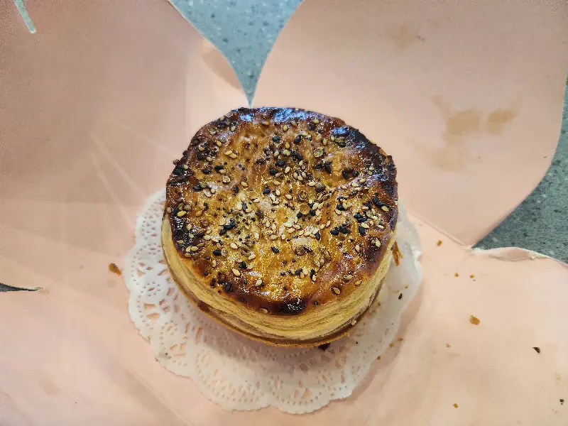 Pink Pastry에서 가장 유명한 메뉴는 단연 와규 & 머쉬룸 파이였다. 겉은 바삭하고 속은 촉촉한 페스츄리 속에 큼지막한 와규와 버섯이 가득 들어있었다. 파이를 한 입 베어 물자, 풍부한 육즙이 입안 가득 퍼져 나갔고, 은은한 버섯 향이 와규의 풍미를 더욱 깊게 만들어주었다. 겉면에 뿌려진 깨는 고소함을 더해 맛의 균형을 잡아주었다. 마치 브런치를 먹는 듯 든든한 느낌이었지만, 너무 맛있어서 하나 더 주문하고 싶은 마음이 간절했다.