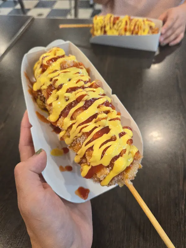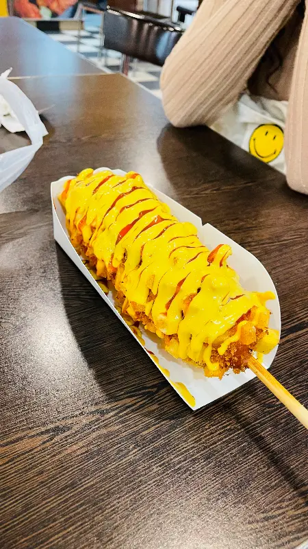 특히 제 시선을 사로잡은 것은, 겉면에 촘촘히 박힌 감자 토핑이었습니다. 톡톡 터지는 감자의 식감이 핫도그의 풍미를 한층 더 끌어올렸습니다. 아이는 감자 치즈 콘도그를 가장 좋아했는데, 따뜻하고 부드러운 치즈가 입안 가득 퍼지는 것이 정말 행복한 표정이었습니다.
