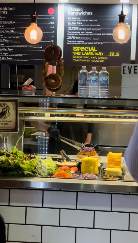 가게 안은 활기 넘치는 분위기였다. 직원들은 분주하게 샌드위치를 만들고 있었고, 손님들은 저마다 기대에 찬 표정으로 주문을 기다리고 있었다. 메뉴판을 살펴보니 다양한 종류의 샌드위치와 베이글이 준비되어 있었다. 클래식 샌드위치부터 시그니처 샌드위치까지, 보기만 해도 군침이 도는 메뉴들이 가득했다. 메뉴판 옆에는 오늘의 스페셜 샌드위치가 적혀 있었는데, 12달러라는 합리적인 가격에 판매되고 있었다.