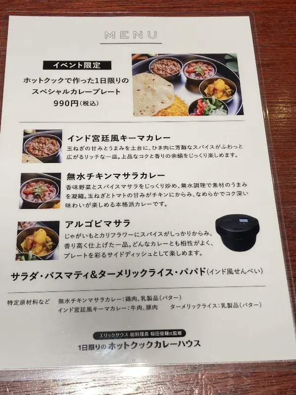 평일 점심시간에 방문하면 1,240엔으로 런치 카레 플레이트를 즐길 수 있다. 3가지 종류의 카레를 선택할 수 있어 다양한 맛을 경험할 수 있다는 점이 매력적이다. 합리적인 가격으로 맛있는 카레를 맛볼 수 있다는 점은 에릭사우스를 더욱 특별하게 만든다.