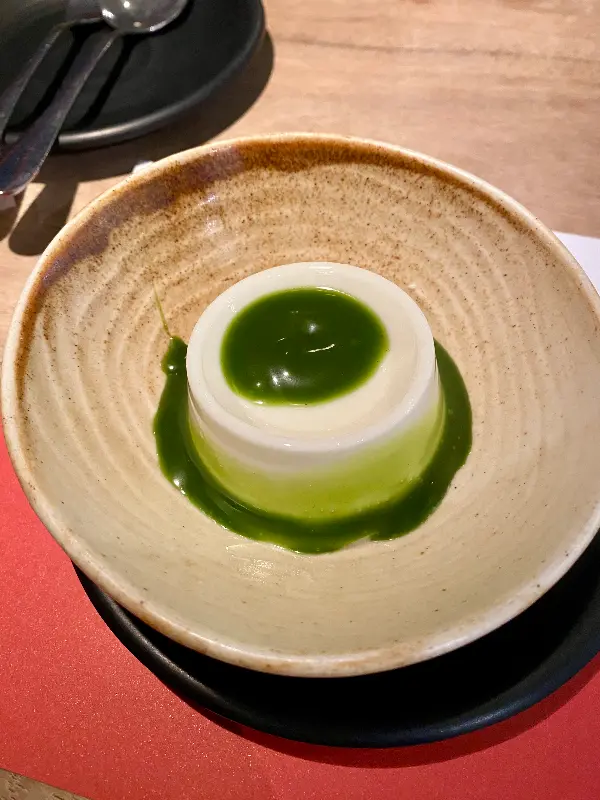 입안을 부드럽게 감싸는 녹차 푸딩, 달콤함으로 마무리하는 완벽한 식사.