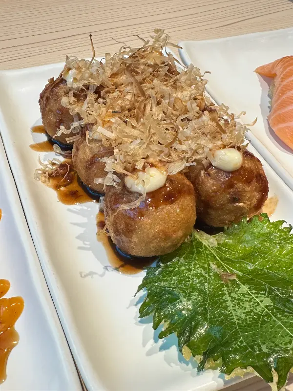 겉은 바삭, 속은 촉촉한 타코야끼, 맥주와 함께 즐기기 좋다.