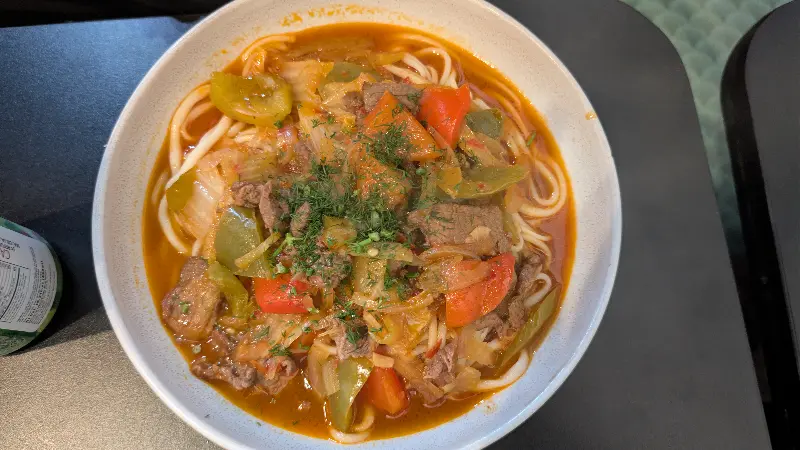 따끈한 국물이 그리워 투르크멘 라그만을 추가로 주문했다. 뽀얀 국물 위로 얹어진 고기와 야채 고명이 보기만 해도 군침이 돌았다.