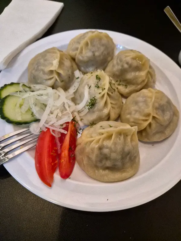 다음으로 맛본 실크로드 만두는 겉은 쫄깃하고 속은 육즙이 가득했다. 얇은 만두피 안에는 다진 고기와 향긋한 향신료가 어우러져 독특한 풍미를 자아냈다. 함께 나온 수즈마는 신선한 허브와 함께 곁들여 먹으니 더욱 맛있었다.