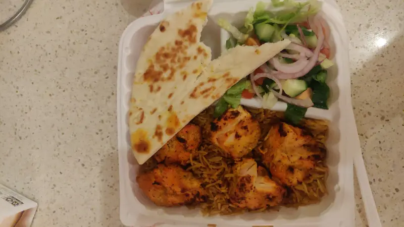 치킨 케밥 플레이트는 모든 맛의 조화가 완벽했습니다. 적절한 온도에서 조리된 케밥은 풍미가 가득했고, 밥과 샐러드 또한 신선했습니다. 특히, 피타 빵과 소스가 넉넉하게 제공되어 더욱 만족스러운 식사를 즐길 수 있었습니다.