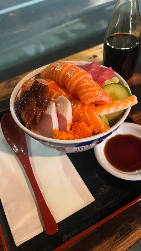 다음으로 맛본 메뉴는 치라시 덮밥. 다양한 종류의 신선한 사시미가 밥 위에 촘촘히 올려져 있다. 윤기가 흐르는 사시미의 자태에 감탄하며, 조심스럽게 한 점을 맛보았다. 입안에서 살살 녹는 듯한 부드러운 식감과 신선한 해산물의 풍미가 입안 가득 퍼진다. 밥알 한 톨까지 놓치고 싶지 않은 맛이다. 돈부리 스테이션의 치라시 덮밥은 왜 많은 사람들에게 사랑받는지 알 것 같다.
