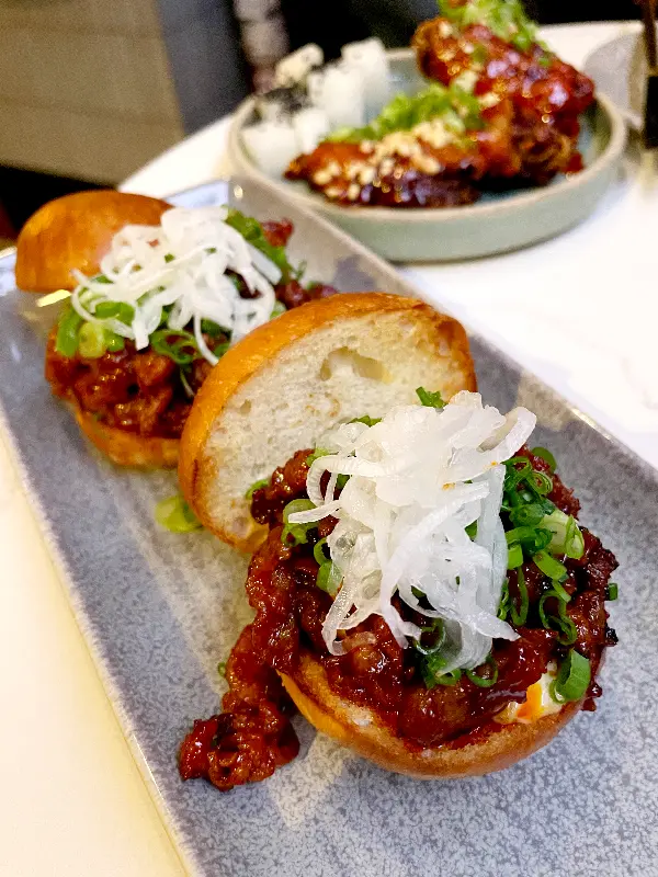 불고기 슬라이더가 먼저 나왔습니다. 빵 사이에 윤기가 자르르 흐르는 불고기와 신선한 채소가 듬뿍 들어간 모습이 먹음직스러웠습니다. 한 입 베어 무는 순간, 입안 가득 퍼지는 불고기의 달콤 짭짤한 맛과 부드러운 빵의 조화는 그야말로 환상적이었습니다. 퓨전 음식이라기보다는, ‘불고기’라는 재료가 가진 본연의 매력을 극대화한 요리라는 느낌이었습니다. 이것이 바로 그 유명한 ‘인생 햄버거’라는 것을 깨달았습니다.