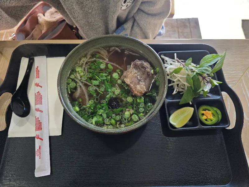 주문 후 5분 정도 기다리니 드디어 쌀국수가 나왔다. 뽀얀 국물 위로 큼지막한 와규 소고기가 듬뿍 올려져 있었고, 파와 고수가 보기 좋게 뿌려져 있었다. 우선 국물부터 한 입 맛보았다. 진하고 깊은 육수의 풍미가 입안 가득 퍼져 나갔다. 기름기는 적고 깔끔하면서도 깊은 맛이 일품이었다. 면발은 쫄깃했고, 와규 소고기는 입에서 살살 녹았다. 특히 좋았던 점은 토핑을 위한 스테이션이 마련되어 있다는 점이었다. 숙주, 고수, 라임, 고추 등을 취향에 맞게 듬뿍 넣어 나만의 쌀국수를 만들어 먹을 수 있었다.
