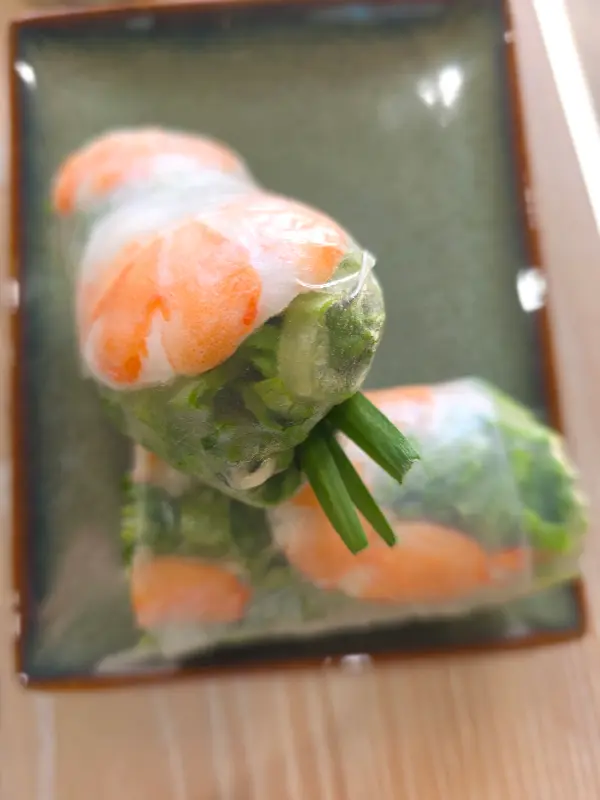 신선한 야채와 새우가 조화롭게 어우러진 롤.