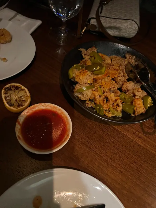 먼저, 칼라마리가 나왔습니다. 겉은 바삭하고 속은 촉촉한 칼라마리는 짭짤하면서도 고소한 맛이 일품입니다. 곁들여 나온 소스에 찍어 먹으니 풍미가 더욱 살아납니다. 다만, 기름기가 조금 많은 점은 아쉬웠습니다.