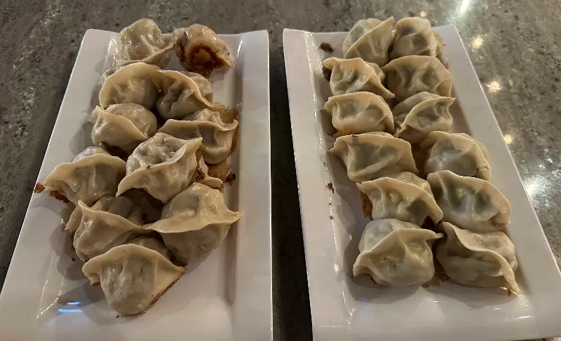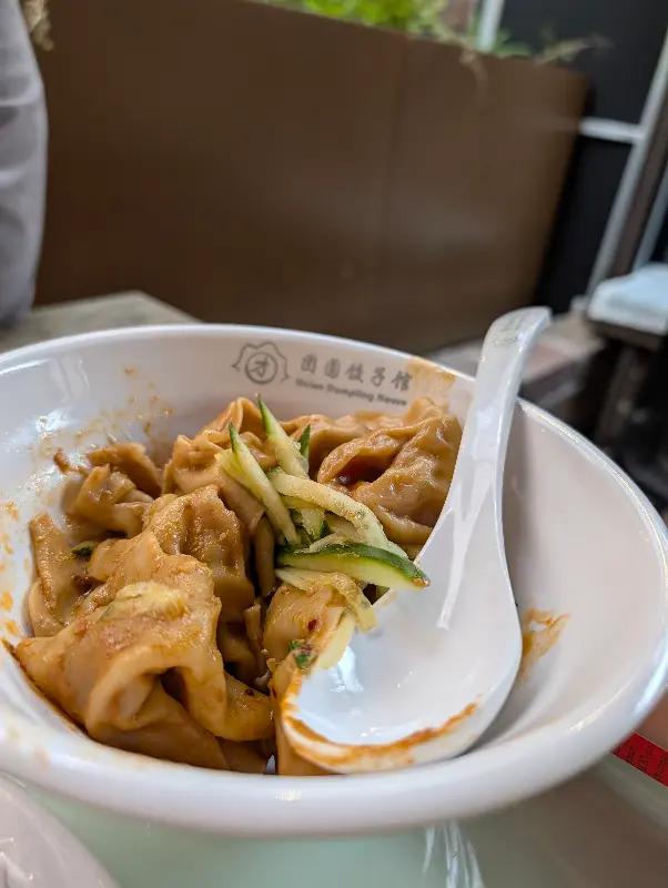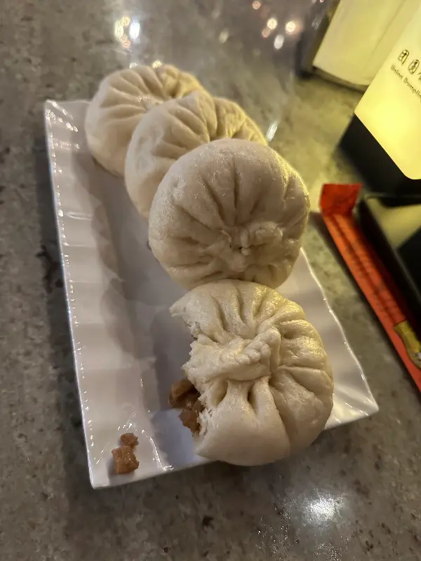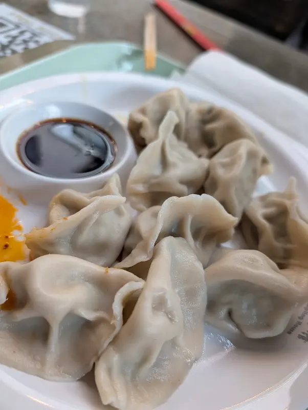 고심 끝에 양고기 고수 만두, 돼지고기 새우 만두, 그리고 매콤한 감자 샐러드를 주문했다. 잠시 후, 테이블 위에 놓인 만두의 모습은 정말 먹음직스러웠다. 윤기가 흐르는 만두피와 코를 자극하는 고소한 향이 식욕을 자극했다.
