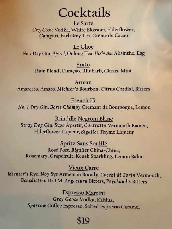 프랑스 레스토랑이라고 하기에는 메뉴가 꽤 다양했습니다. 5코스 정식 메뉴는 155~170달러로, 다양한 선택지를 제공했습니다. 메뉴를 펼쳐 들고 고민하는 사이, 서버의 친절한 설명이 이어졌습니다. 그는 메뉴에 대한 해박한 지식을 바탕으로, 음식의 재료와 조리법, 맛에 대한 설명을 자세하게 해주었습니다. 덕분에 저의 취향에 맞는 메뉴를 선택하는 데 큰 도움이 되었습니다.
