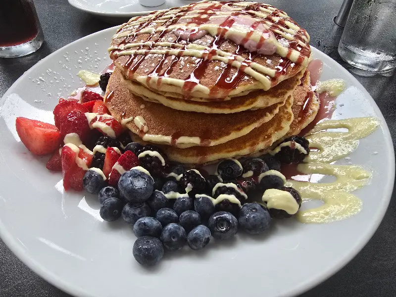 여행 기분을 내기 위해 이것저것 시켰더니, 역시나 양이 너무 많았습니다. 하지만 남은 음식은 포장해갈 수 있어서 좋았습니다. 다음 날 아침에도 Wildberry Pancakes & Cafe의 맛있는 팬케이크를 즐길 수 있었으니까요.